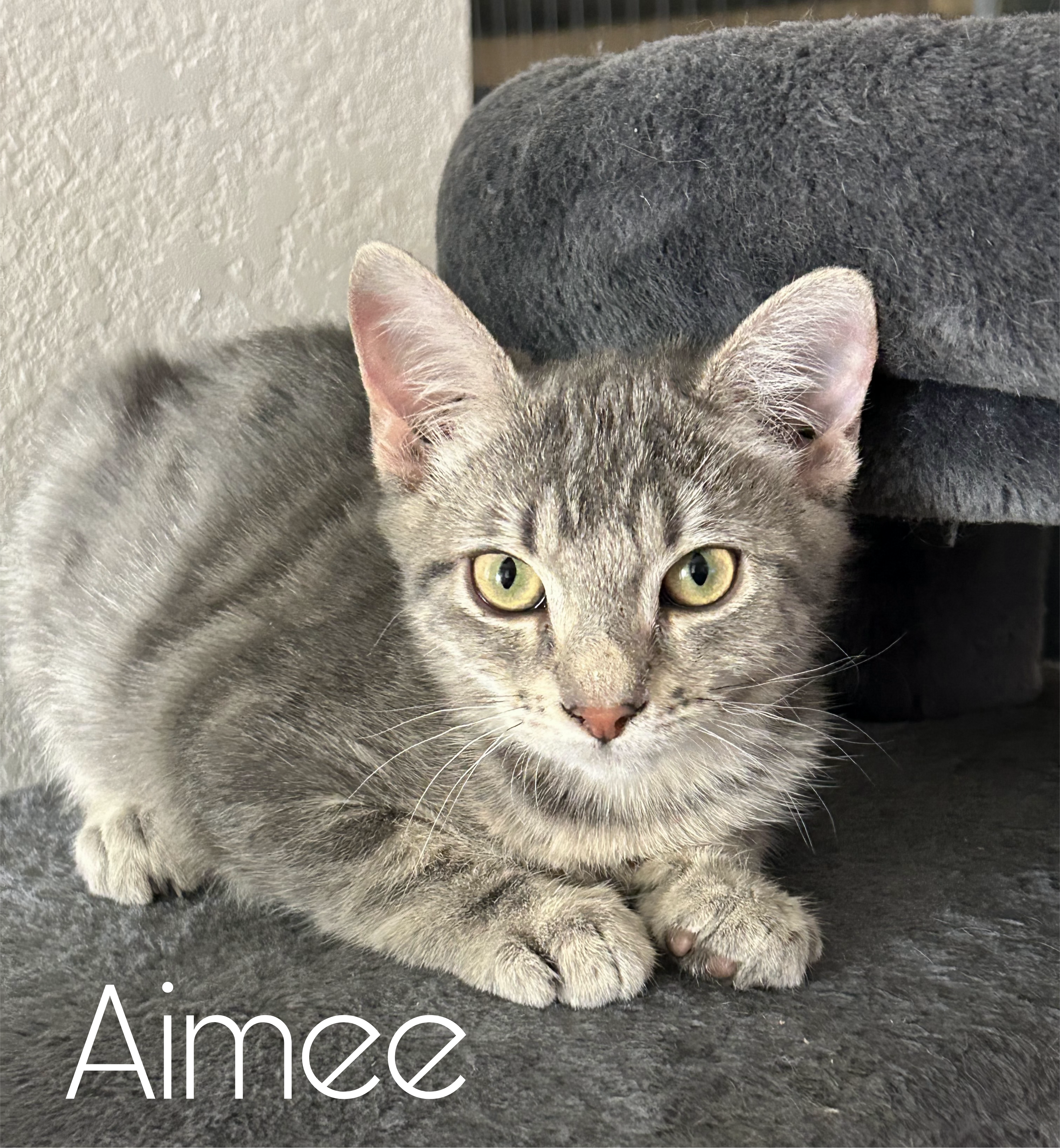 We're happy to tell you that Aimee has a new furever home. Please visit our Available Cats Page to see the cats currently available.