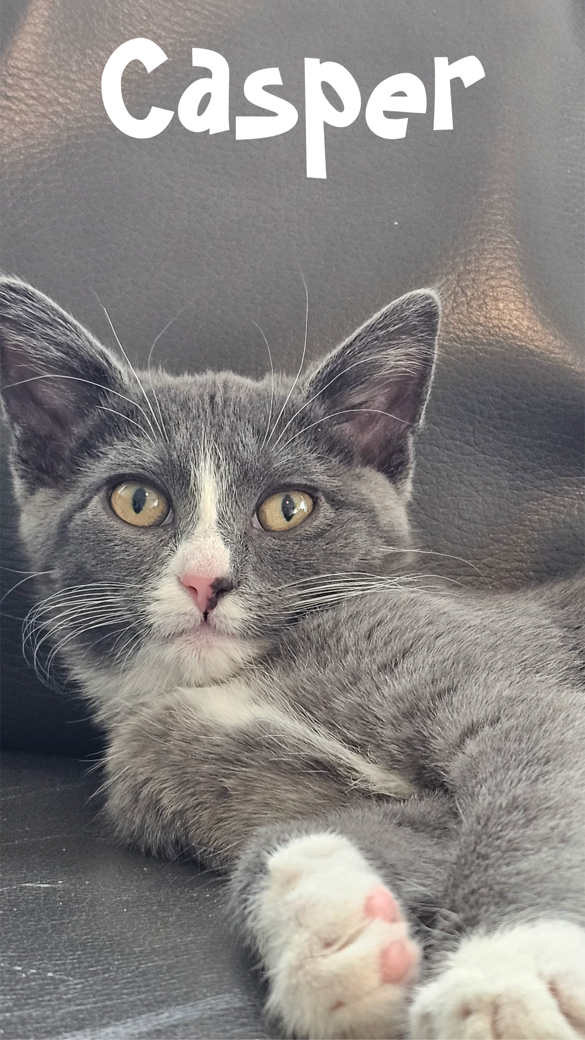 Casper is a sweetheart who loves an adventure. She loves attention when she is not running around and playing. Casper does great with other cats and dogs