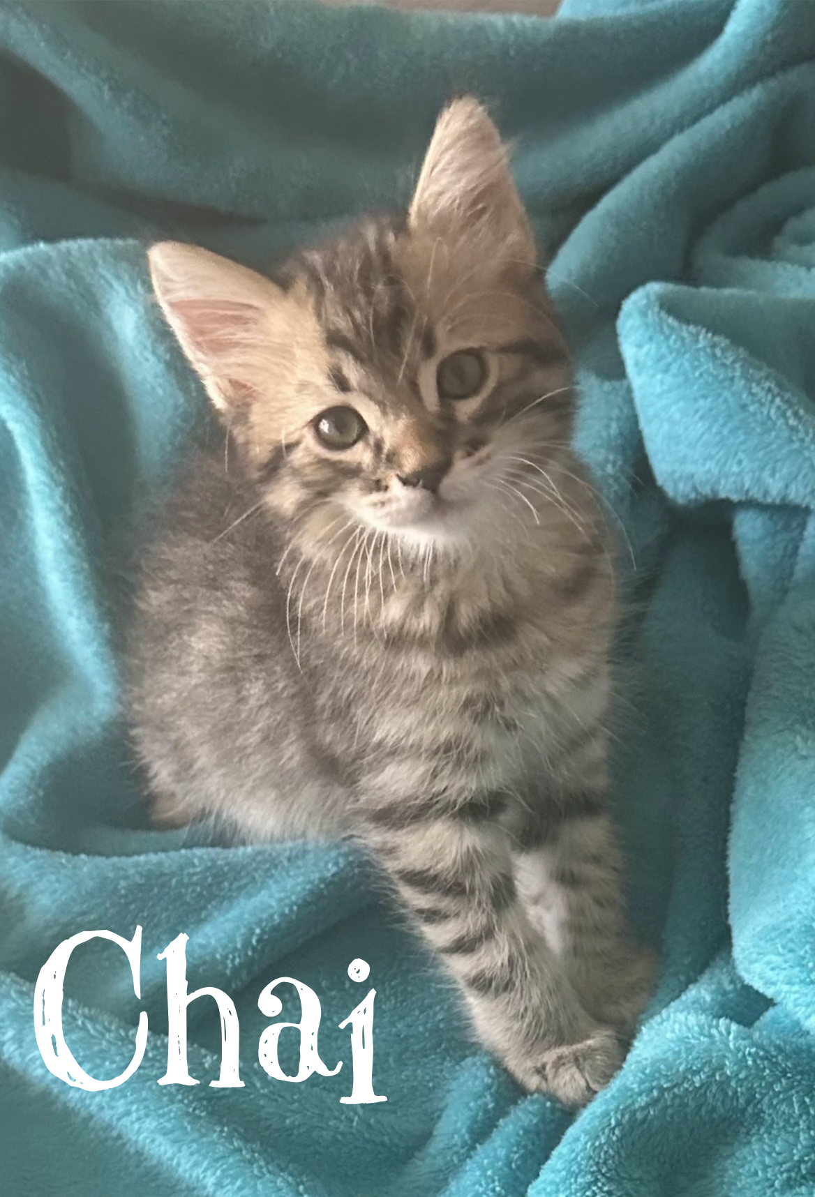 Chai is an active sweet kitty who loves people, playing with toys and wrestling with his brothers.