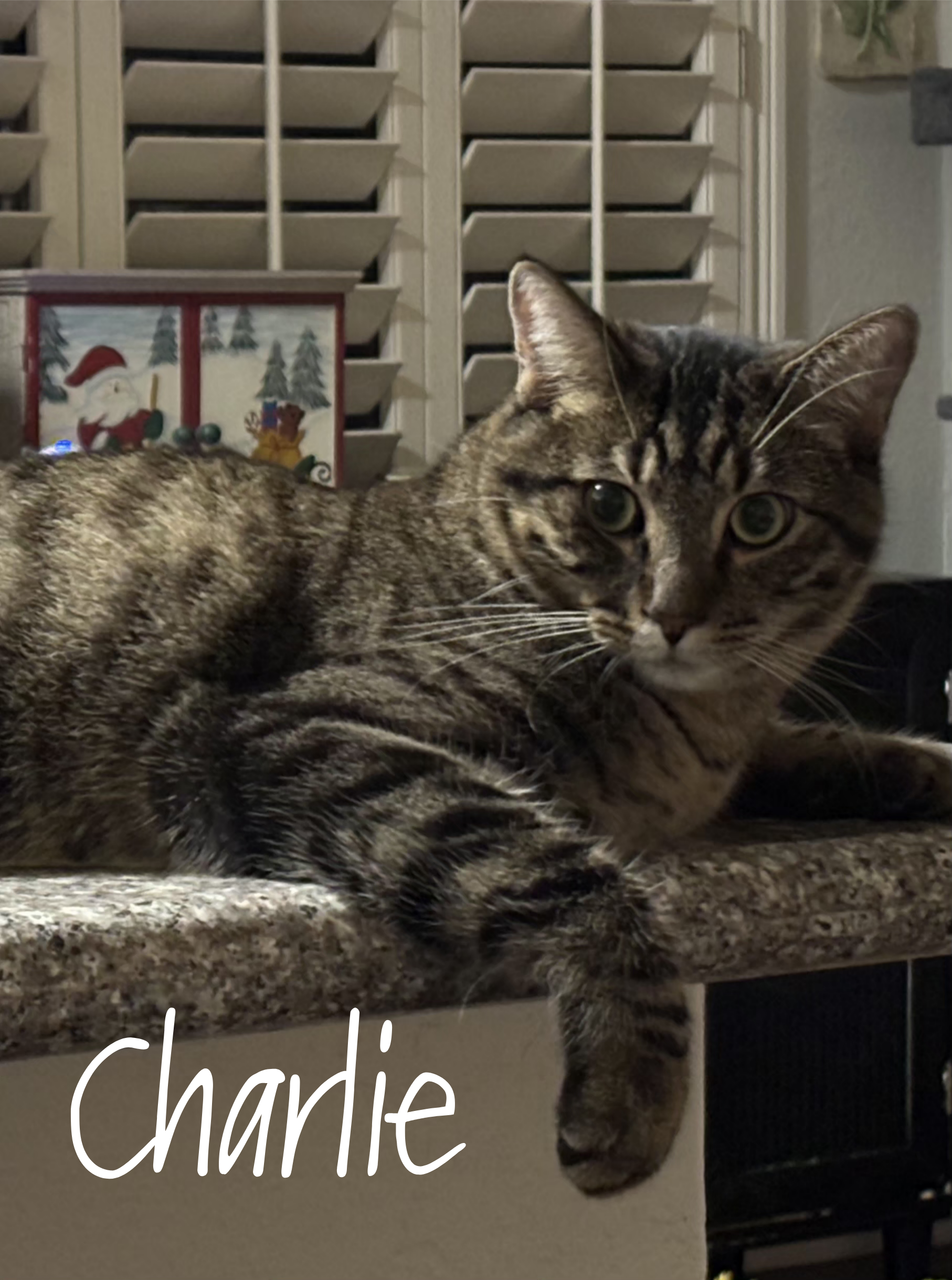 We're happy to tell you that Charlie has a new furever home. Please visit our Available Cats Page to see the cats currently available.