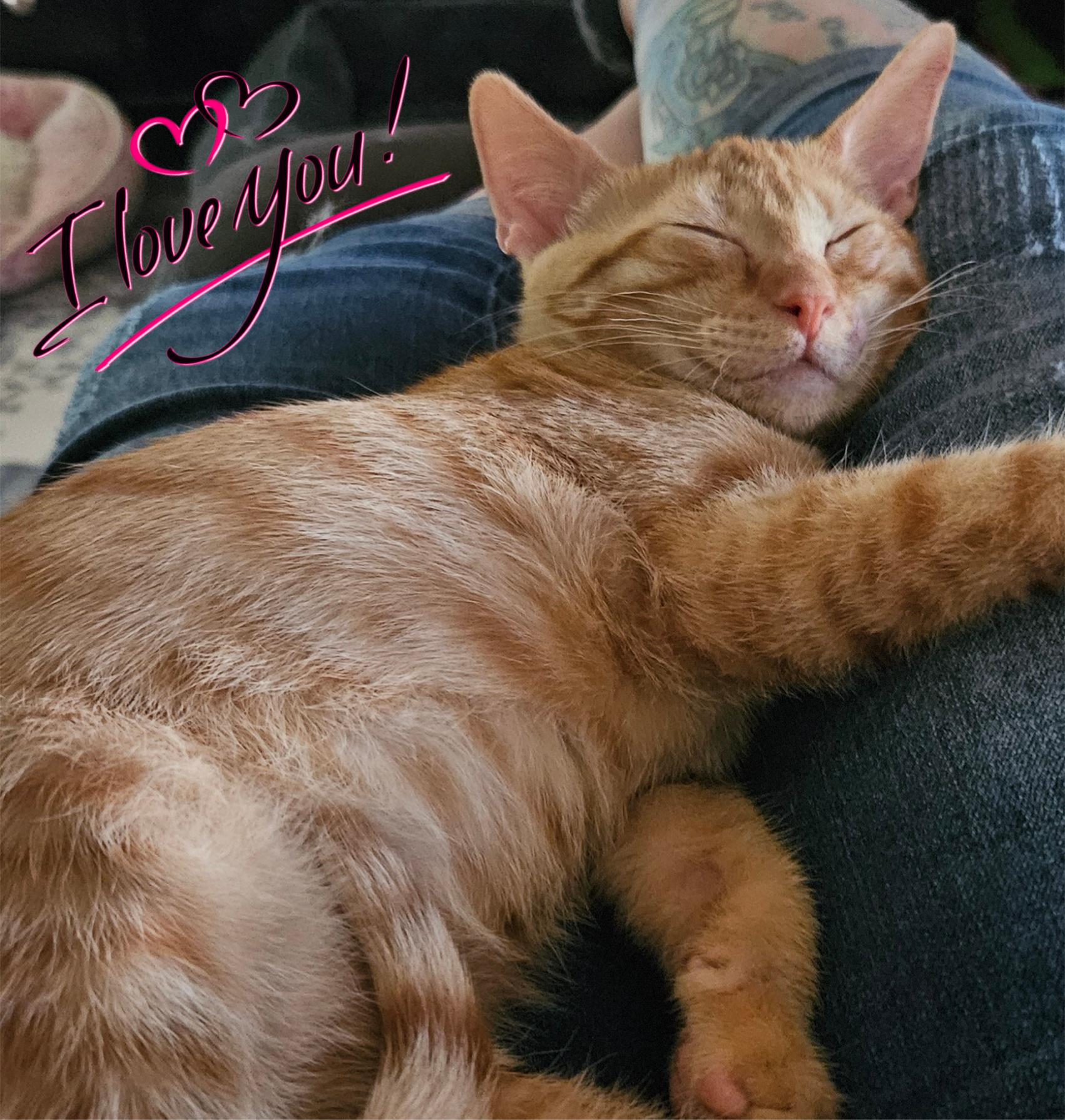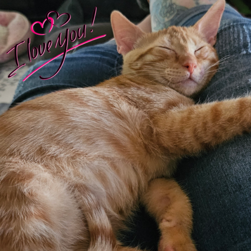 Cheddar is full of energy and loves to run and play . Cheddar loves to snuggle on a lap and bug you while your in the kitchen for treats. He does great with other cats and dogs