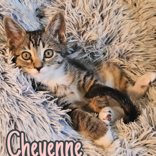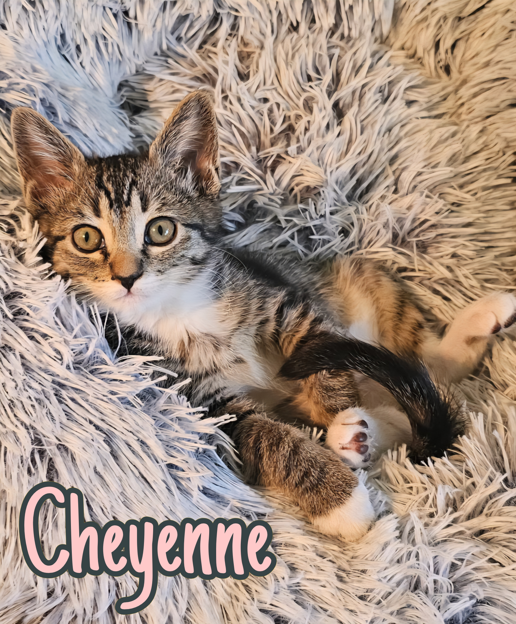 Cheyanne is sweet and full of adventure. She likes cuddle time after she has had plenty of play time. She does great with other cats and dogs.
