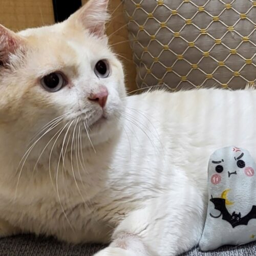 Dempsey is a wonderful lap warmer who loves attention. He likes to sleep with you at night and he is a couch potato. Dempsey does great with other cats and dogs.