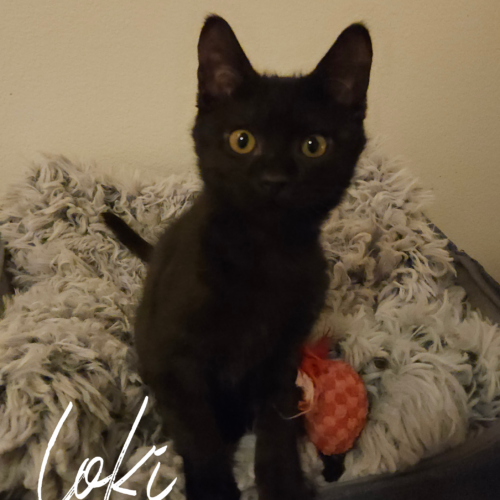 Loki is the typical playful kitten who loves to run and explore. He also has a sweet side where he loves to fall asleep on your lap.