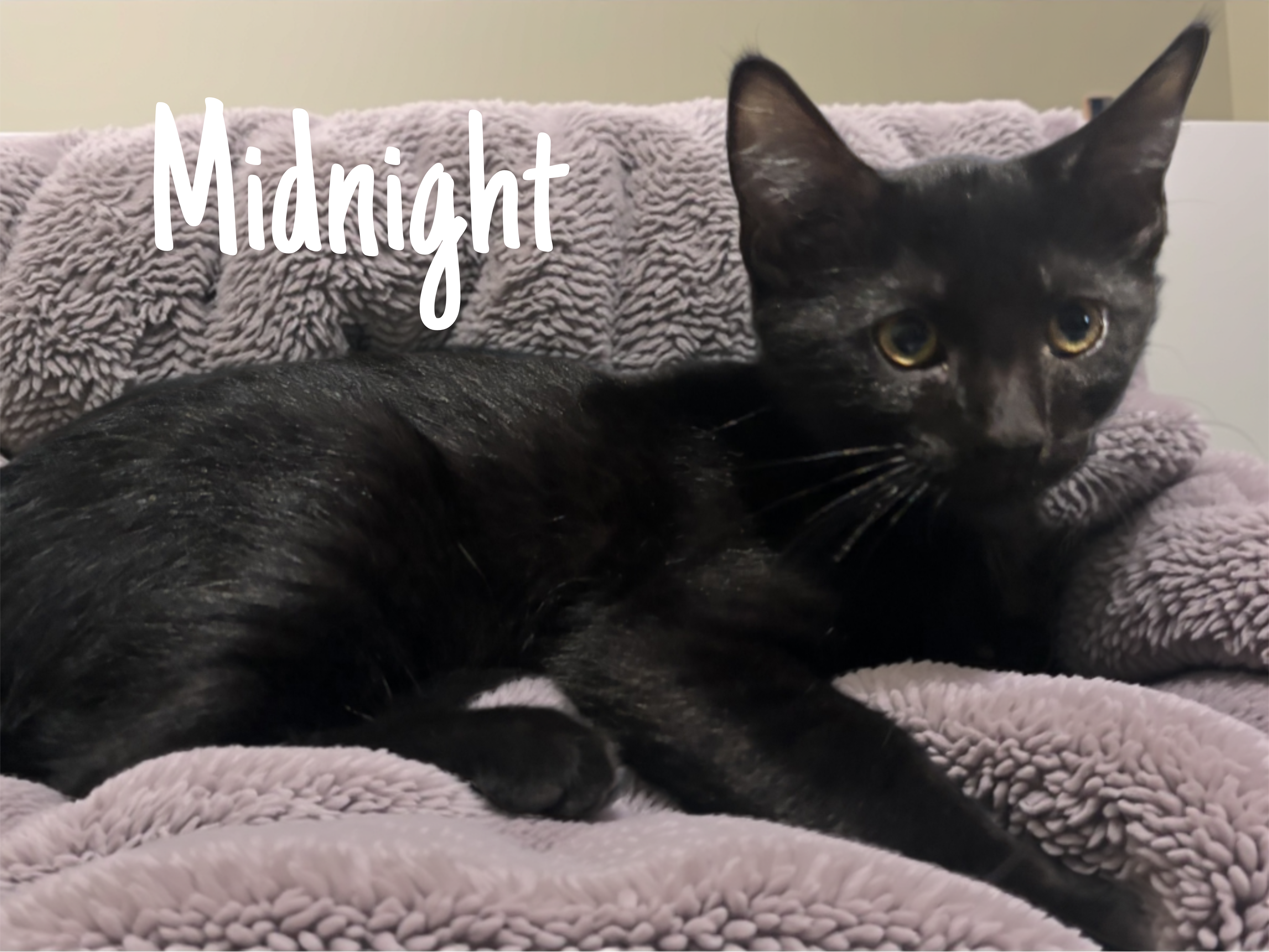 We're happy to tell you that Midnight has a new furever home. Please visit our Available Cats Page to see the cats currently available.