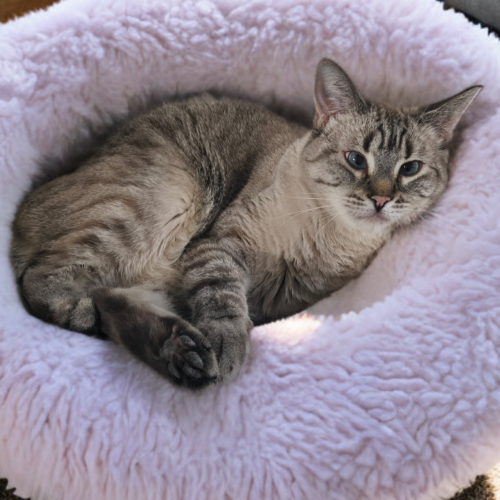 Missy lost her previous home and she is patiently waiting for her forever home. Missy gets along great with other cats and cat friendly dogs.