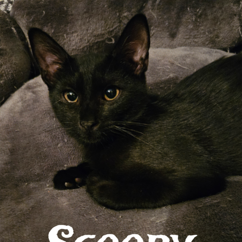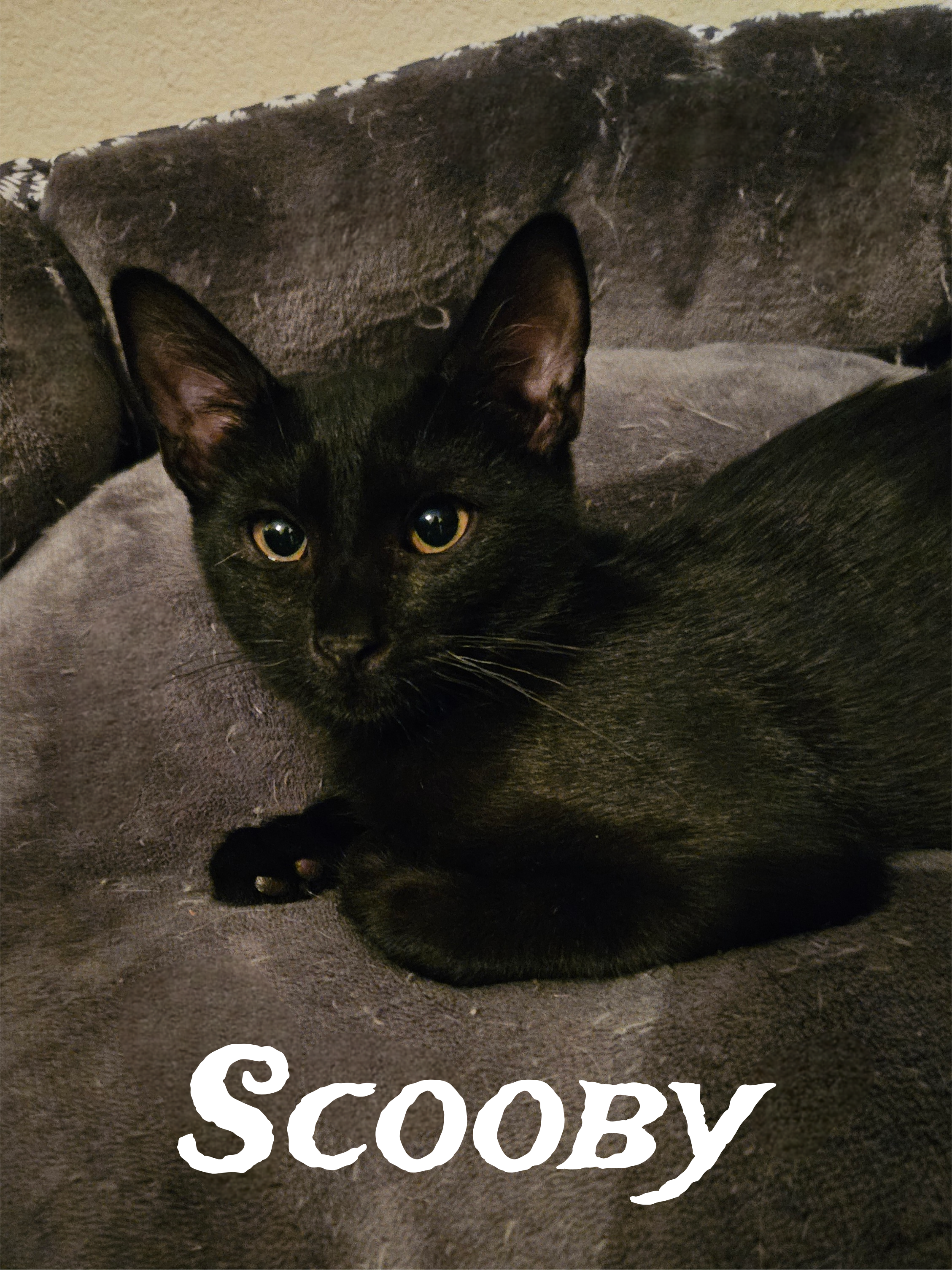 Scooby is a shy kitten who loves a soft fluffy bed to lay in. When you pick him up, he purrs.