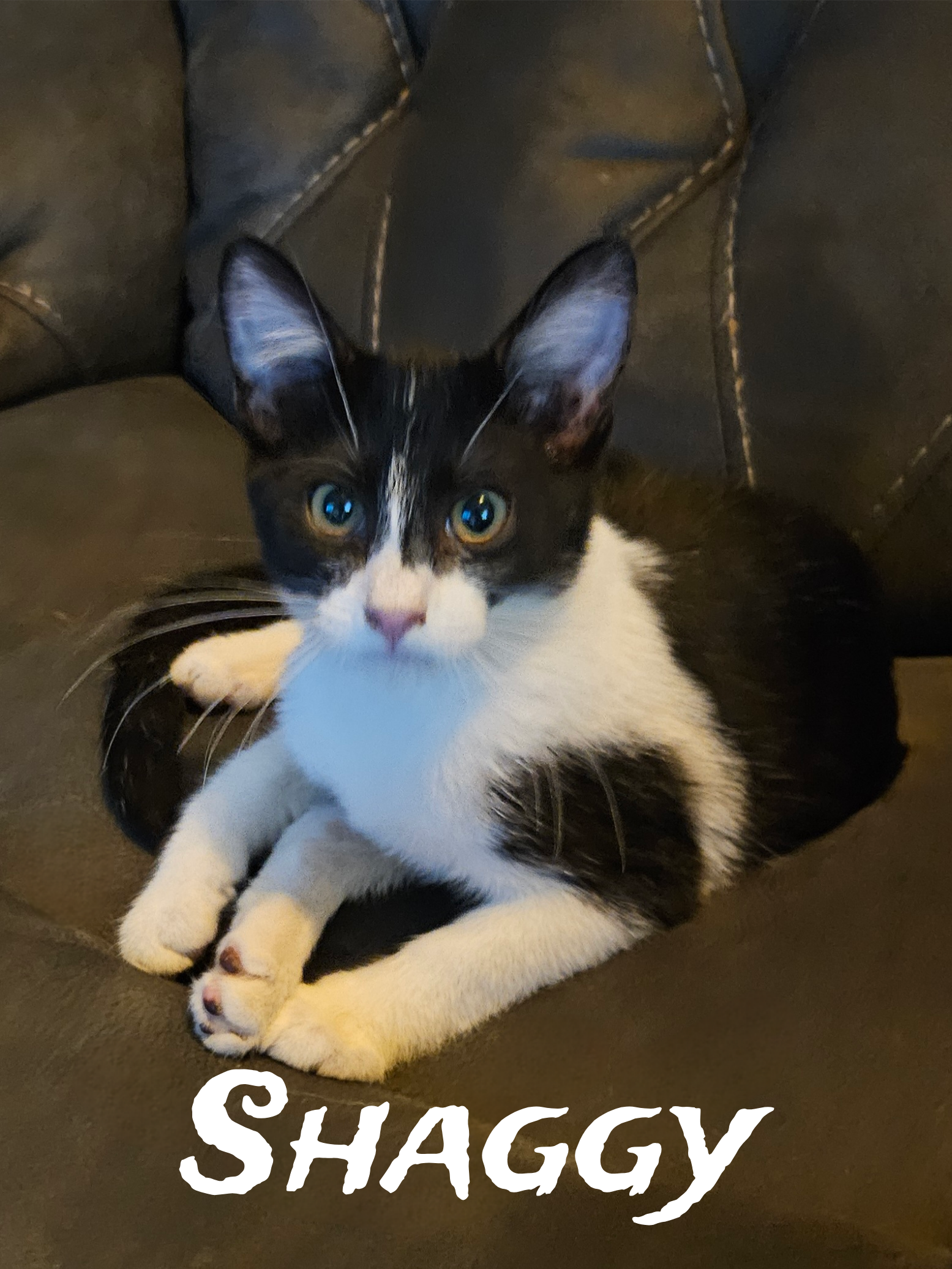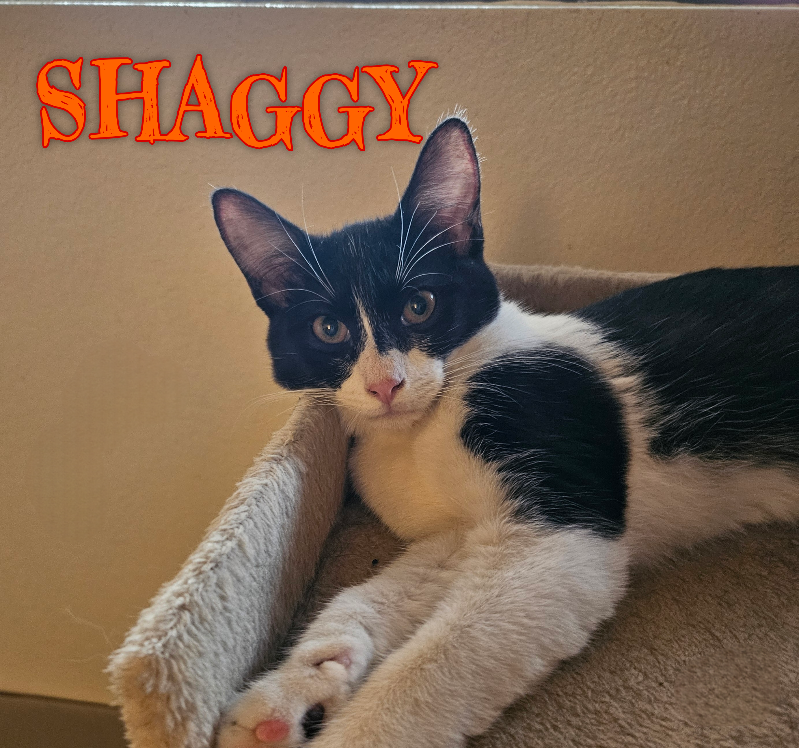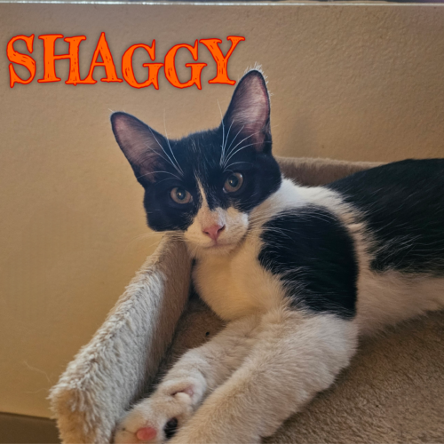 Shaggy loves to lie next to you on the sofa. He is a very active and playful kitten.  Shaggy does great with cats and dogs.