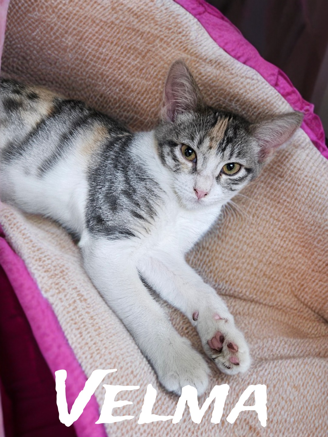Velma is a shy cat who is very independent. She is very playful and gets along with other cats. She doesn't mind dogs who are friendly.
